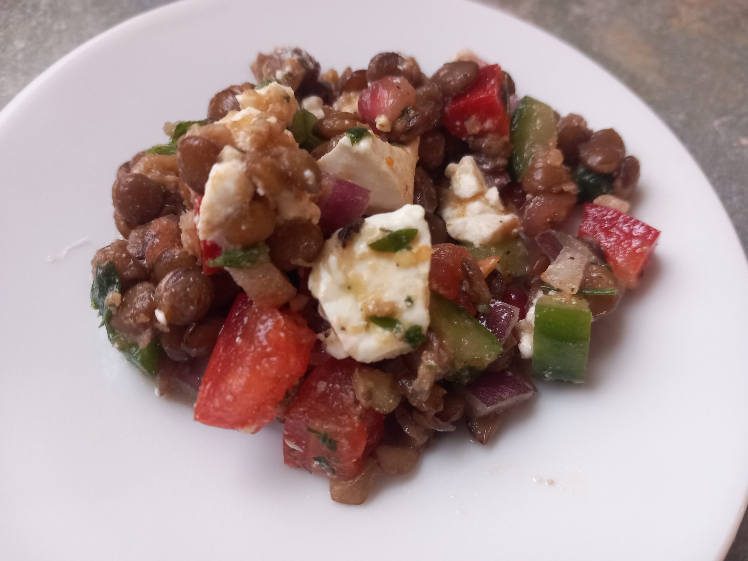 Dieser Salat bietet die perfekte Mischung aus Sättigung, Geschmack und Leichtigkeit. Die Linsen liefern wertvolle Proteine und Ballaststoffe, während der Feta eine angenehme Würze und eine cremige Textur beisteuert, die das Gericht so besonders macht. Es ist ein Gericht, das sowohl als Hauptspeise als auch als Beilage glänzt.
